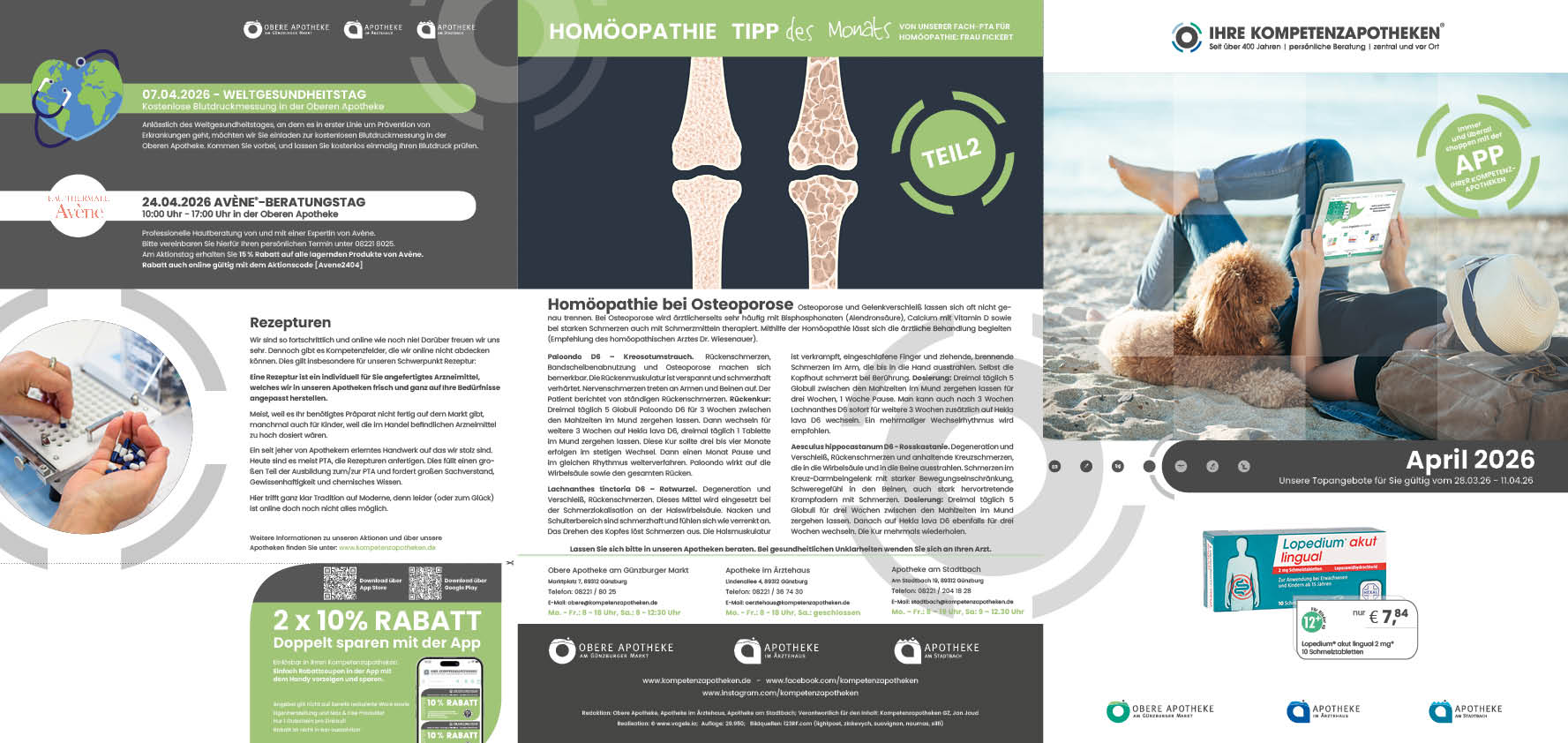 Jeden Monat stellen wir für Sie besondere Angebote zusammen, bei denen Sie noch mehr sparen und doppelt profitieren. Dies ist auf jeden Fall einen Besuch in unseren Apotheken wert!